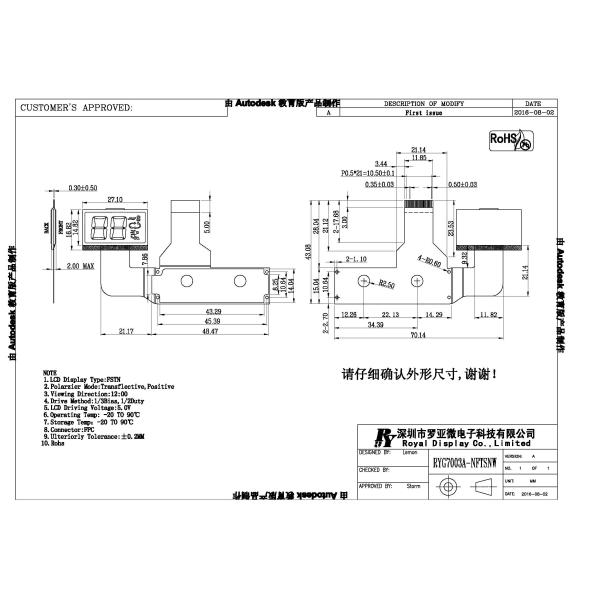Product Name : FSTN Custom Lcd Panel RYG7003A-NFTSNW